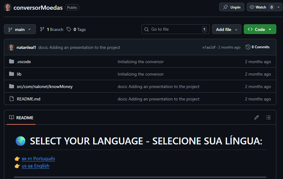 Desenvolvi um sistema que consulta um serviço externo e oferta a conversão das moedas definidas no sistema. Clique para saber mais